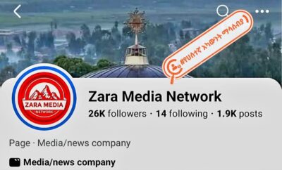 በዛራ ሚዲያ ኔትወርክ ስም የተከፈተ ሀሰተኛ የፌስቡክ ገፅ ማሳሰቢያ